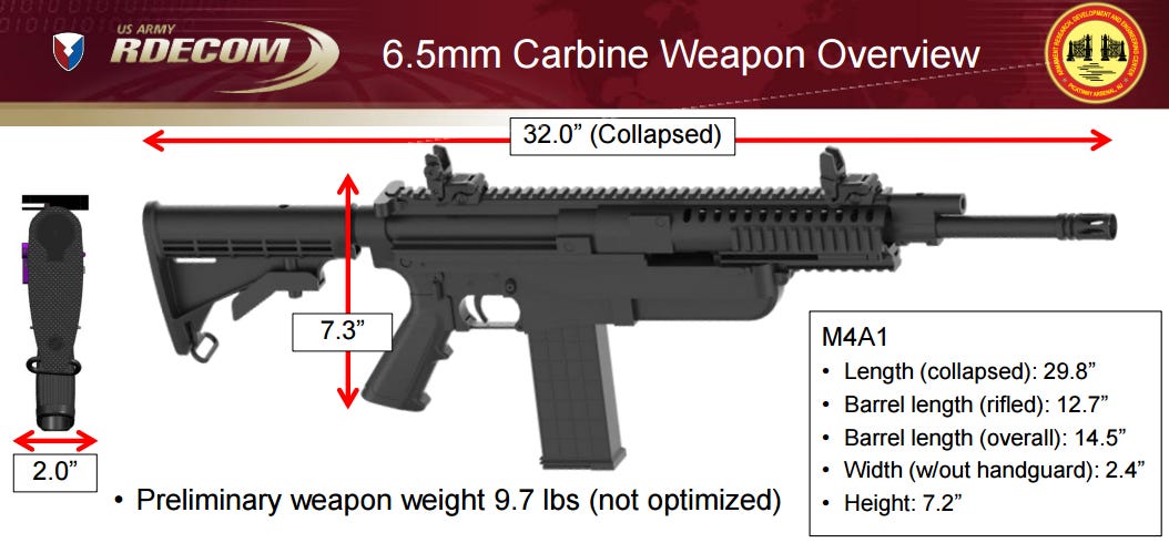 Accounting for all these increases to reach an estimate for the weight of a new carbine is relatively simple. The current M4 (not A1) Carbine’s weight breaks down like so: